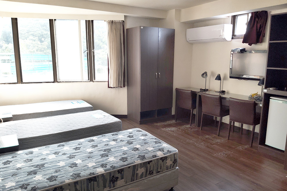 - 單人有窗套房,單人走廊窗套房,雙人有窗套房。